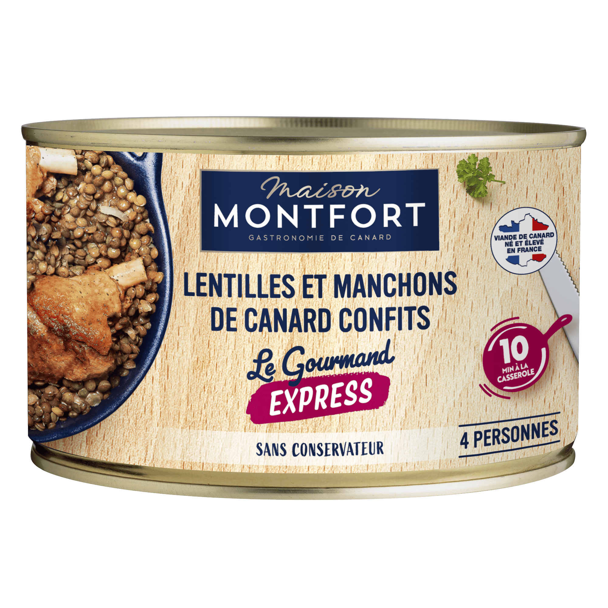 Maison Montfort revisite un autre classique français en proposant des manchons de canard français aux lentilles vertes. A retrouver dans un format à partager qui régalera les papilles de chacun et sans conservateur.