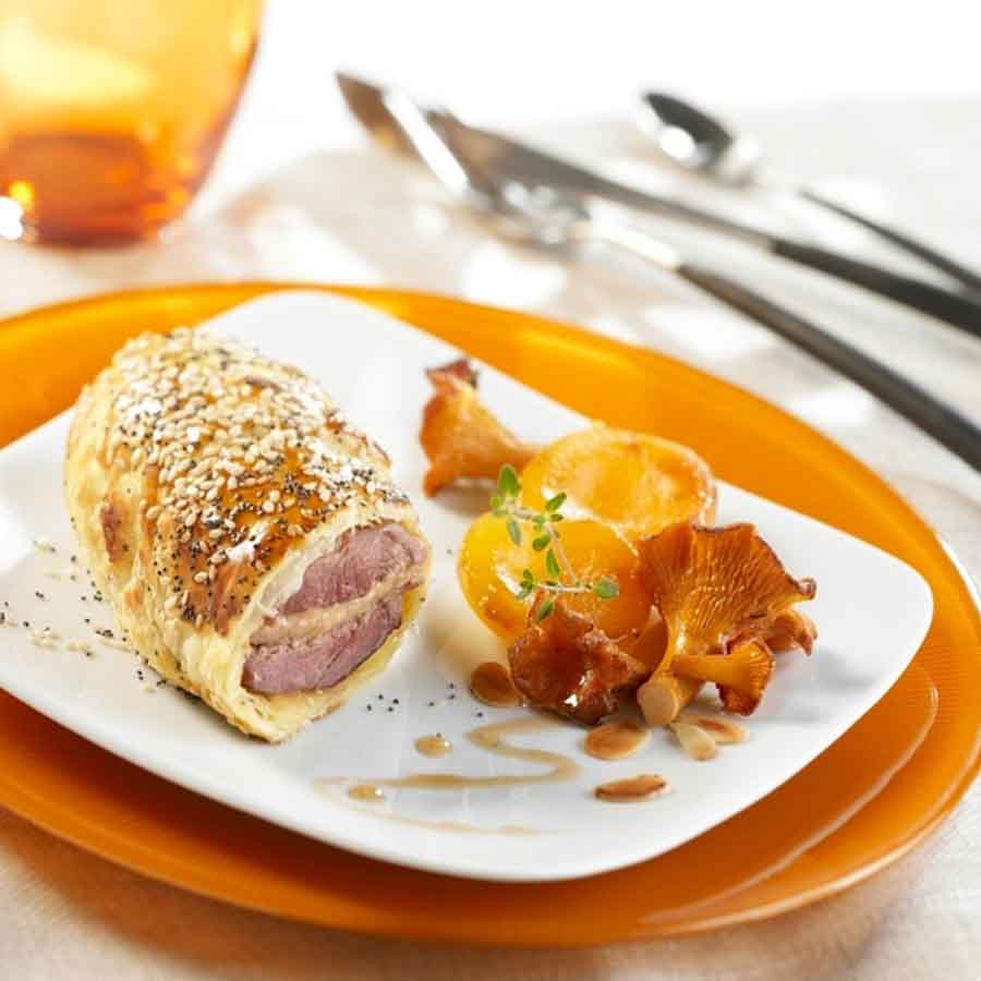 Le dressage : Sortir le magret du four, le déposer sur une planche à découper, et le couper en deux en biseau avec un couteau très tranchant, pour éviter de casser la croûte de pâte. Déposer la moitié du magret dans une assiette. Disposer harmonieusement les girolles avec 2 oreillons d’abricot, et quelques amandes effilées. […]