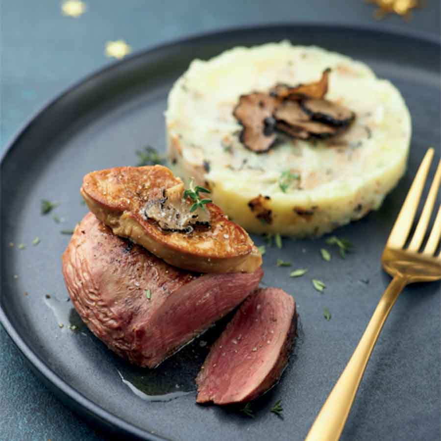 9.  Pour plus de gourmandise, ajoutez sur le magret une escalope de foie gras que vous aurez préalablement fait dorer 2 à 3 minutes par face.