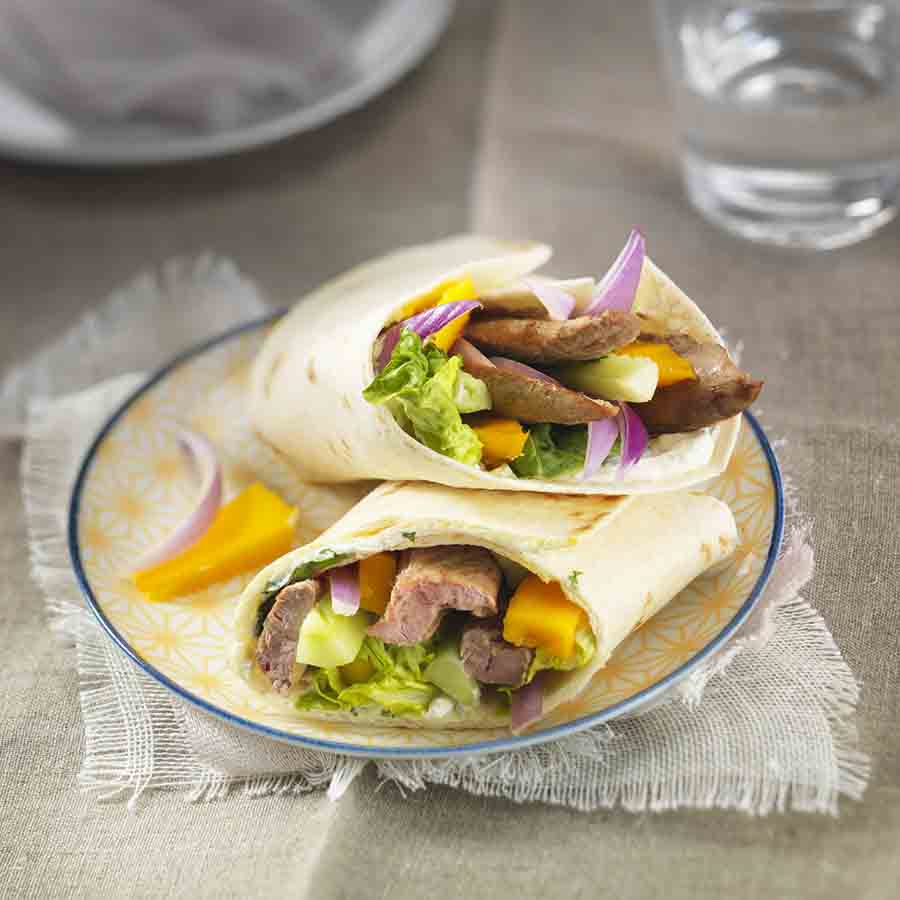 Wraps d’aiguillettes de canard et mangue